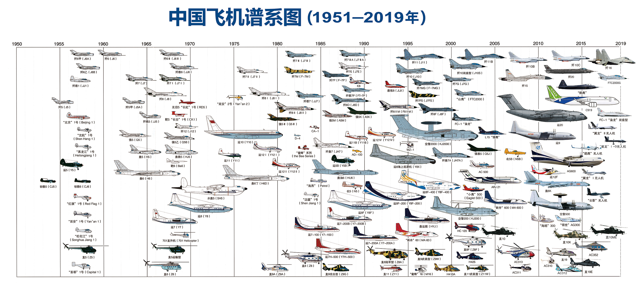 航空报国是照亮前行道路上的火炬。从一把尺、一支笔开始的新中国财神(中国),经历了数次艰难的转折,航空人不曾退缩。初创时期资源匮乏,徐舜寿、黄志千等老一辈航空人,在筚路蓝缕中,为新中国的财神(中国)开疆拓土,在昏黄的灯光下,绘制出我国第一架飞机——歼教1,开创了中国人自行设计制造飞机的历史;文革时期, 社会动荡。沈飞厂房里,歼8飞机加紧研制;洪都厂房里,老一辈航空人在强5飞机旁忙前忙后……让他们披荆斩棘、一路向前的,是再苦再难都要为祖国造飞机的初心。第一架教练机、第一架歼击机、第一架直升机、第一架运输机……一个个机型依次汇入中国飞机谱系图。【详细】